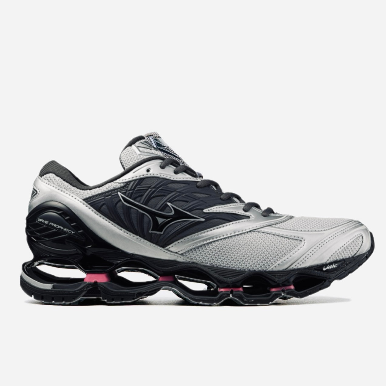 Le Future Gardens Pack s'inspire de la relation entre la nature et la technologie et reproduit les vibrations d'une interaction pacifique entre l'homme et la nature. Les chaussures sont habillées de tons neutres, mais elles présentent également des accents de couleurs vives d'inspiration botanique. Elles présentent des caractéristiques reconnaissables : la broderie fleurie « AYAME » sur la languette et la semelle extérieure marbrée. Notre silhouette la plus emblématique, la Wave Prophecy LS, dans un coloris clair et facile à porter, caractéristique de la collection Future Gardens Pack. La caractéristique principale de cette chaussure est l'emblématique Infinity Wave qui est l'exécution la plus franche de la technologie Wave. La forme en éventail double offre le plus haut niveau de soutien. Pour le soutien latéral, la Prophecy LS est également dotée d'une cage texturée moulée.